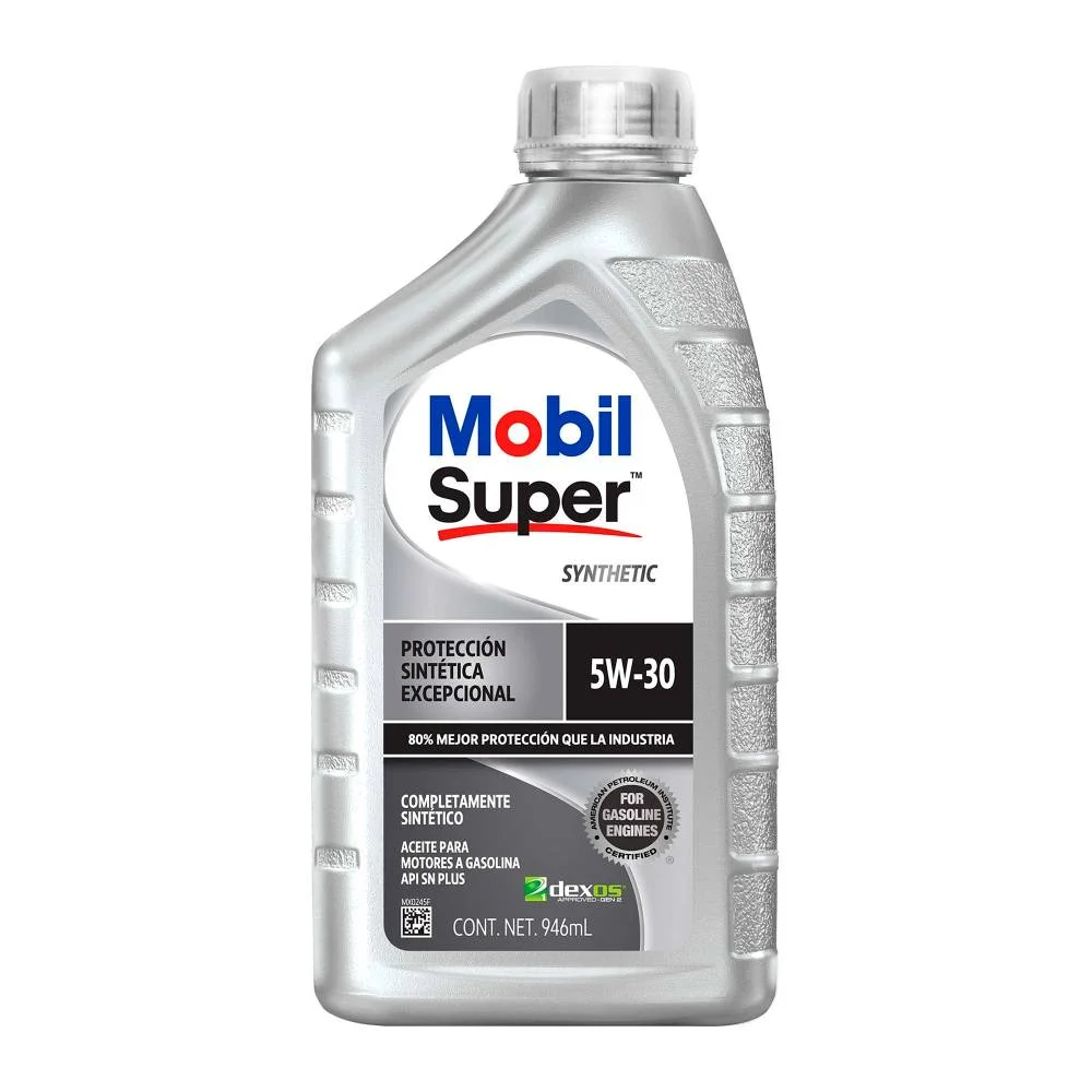 Aceite de motor MOBIL completamente sintético, viscosidad 5W-30, presentación de 946 ml (1 cuarto de galón), diseñado para satisfacer los exigentes requerimientos de los motores modernos. Su fórmula sintética avanzada reduce la fricción interna, mejora el ahorro de combustible y proporciona una protección superior contra el desgaste, incluso en condiciones extremas de temperatura. Garantiza una fluidez excepcional en arranques en frío y una película protectora estable a altas temperaturas, manteniendo el motor limpio y libre de depósitos. Supera los más altos estándares de la industria y las especificaciones de los principales fabricantes de vehículos. ¡Tecnología de punta para la máxima protección y rendimiento de tu motor!